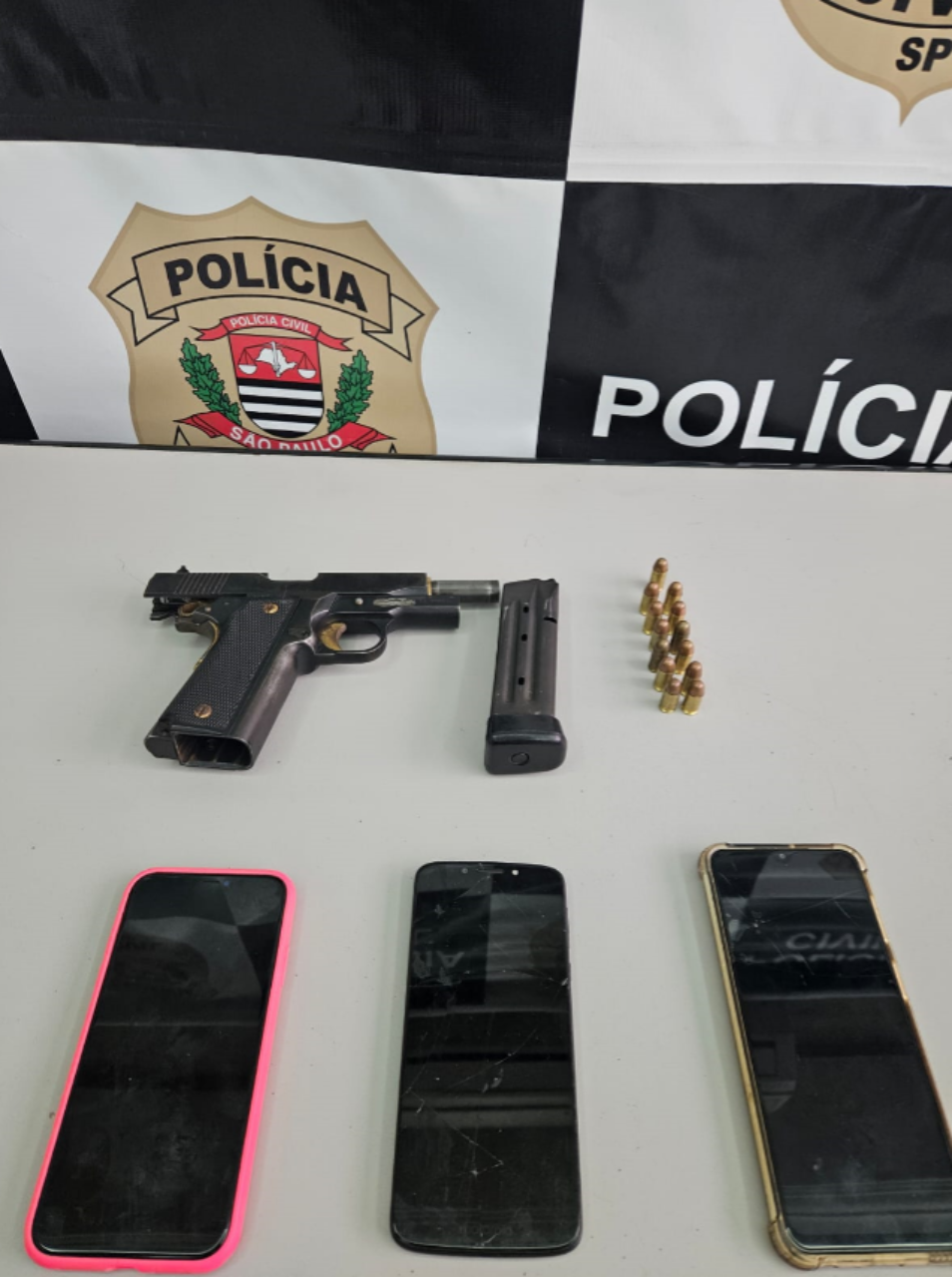 Durante a operação de hoje, foi possível localizar uma arma de fogo calibre 380, com numeração suprimida, municiada, na posse de um dos investigados, com o apoio dos Delegados de Polícia Assistentes da Seccional de Itapetininga, que também atuaram visando a concretização das diligências...